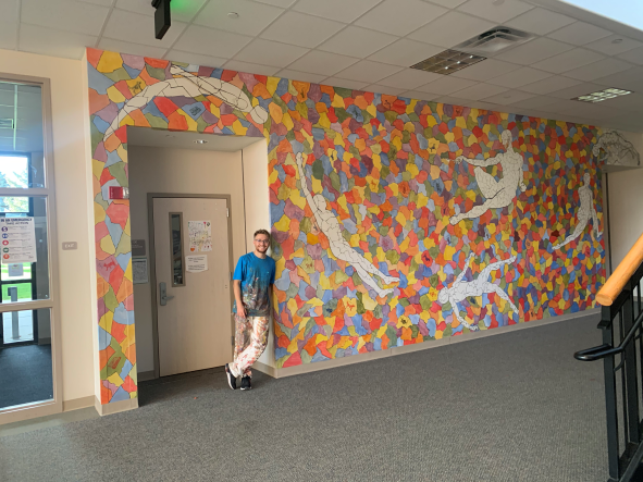This project is a documentation of the collective memory of Grandview Highschool’s class of 2021. Many of the colored cells contain imprints of my classmate’s pet’s names, favorite lyrics, and favorite activities. Silhouettes swim through the quilt of memory, circling around the central figure of the creator. The creator’s posture mirrors that of Adam in the Sistine Chapel. In direct contrast to Michelangelo's painting which highlights human sin, my work endows Adam with a paintbrush. He is both G-d and Human. My pantheism is on full display. The creator is in the act of painting one of the cells. He continues to shape the collective memory. The memory of the succeeding classes.