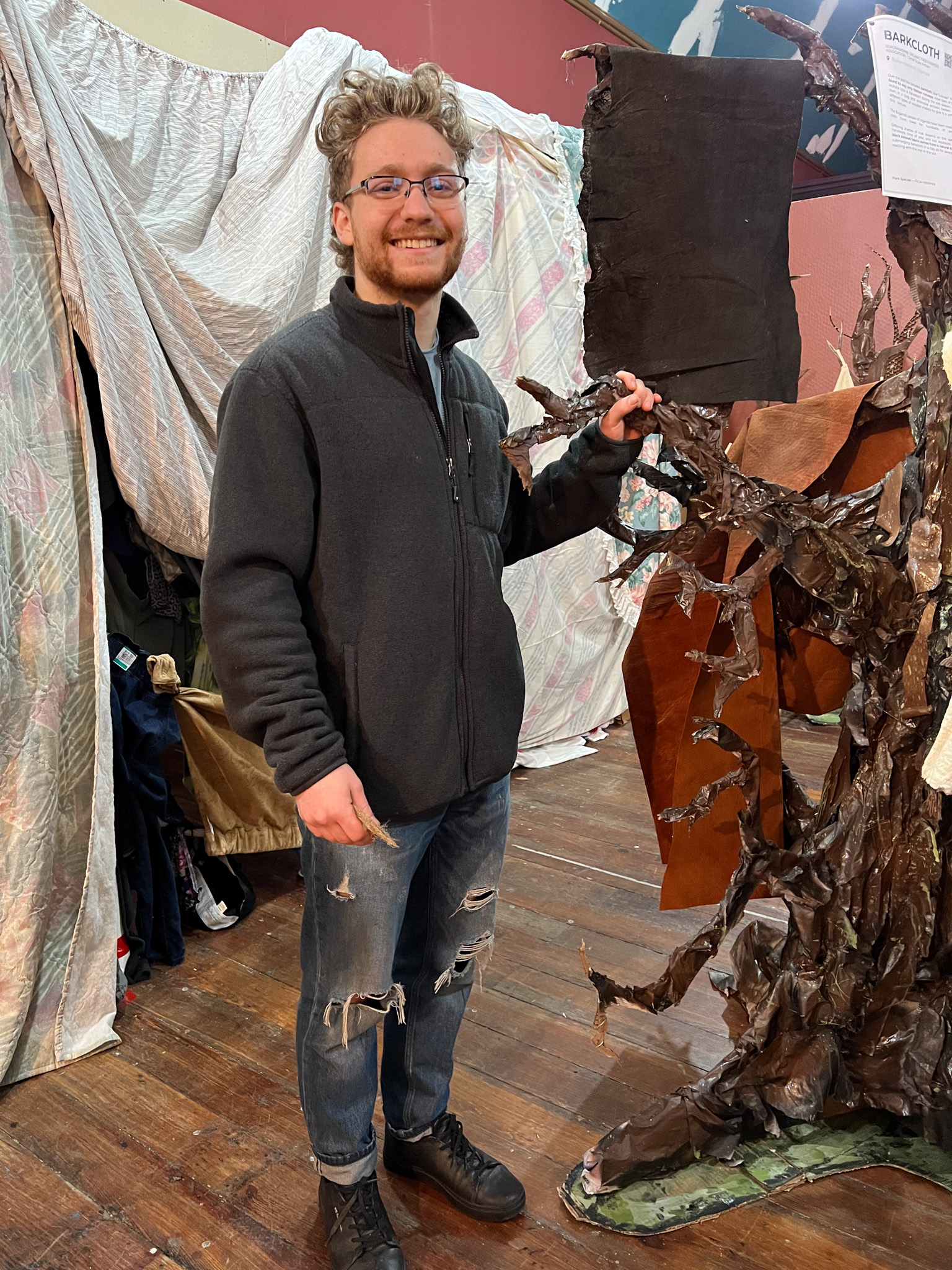 One of the cutouts I made for the show. Fabric dyed with bacteria was displayed on it. This was one of the 80 sustainable fabrics showcased at Hidden Threads.